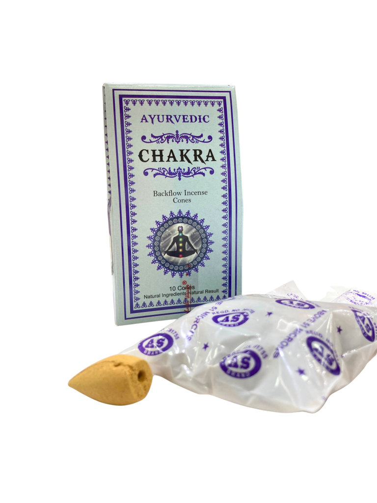 Los conos de reflujo de chakras implican una mezcla única de hierbas raras, flores, miel, resinas y aceites. No contiene materiales tóxicos. Los conos de reflujo de chakras se consideran los centros de la fuerza vital. De hecho, estos centros pueden compararse con el sistema nervioso autónomo o simpático en nosotros. Este sistema nervioso controla la actividad involuntaria del cuerpo y normalmente no está bajo la influencia de nuestra mente consciente. Los conos de chakras ayurvédicos están profundamente conectados a los 7 chakras y su delicada fragancia crea armonía y equilibrio entre la mente, el cuerpo y el alma.