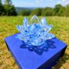 Hecho de cristal multifacético que refleja la luz en múltiples colores.