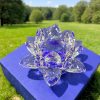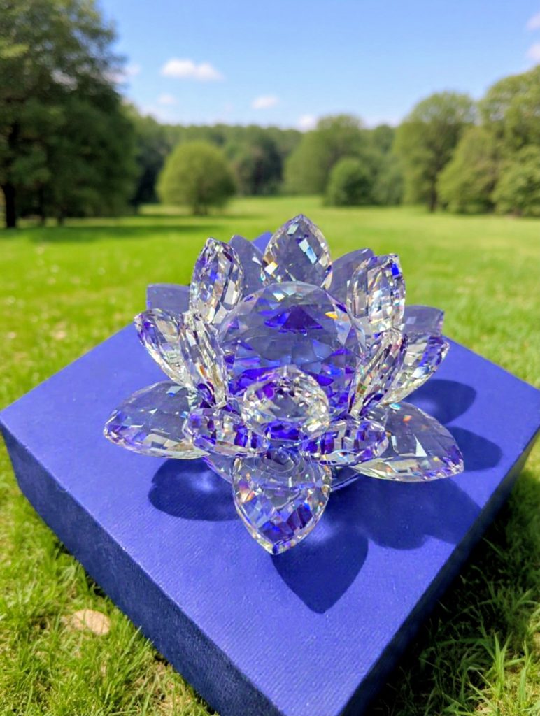 Hecho de cristal multifacético que refleja la luz en múltiples colores.
