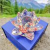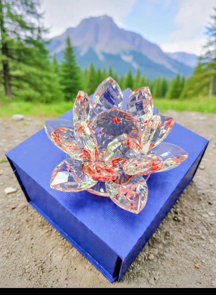 Hecho de cristal multifacético que refleja la luz en múltiples colores.