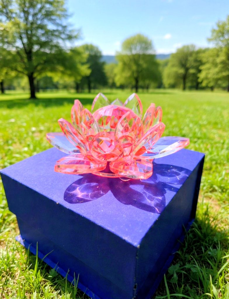 Figura de cristal de Flor de Loto Rosada.